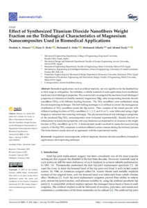 Alnaser, Ibrahim A., Abdo, Hany S., Abdo, Mohamed S., Alkalla, Mohamed and Fouly, Ahmed (2023) Effect of Synthesized Titanium Dioxide Nanofibers Weight Fraction on the Tribological Characteristics of Magnesium Nanocomposites Used in Biomedical Applications. Nanomaterials, 13 (2). p. 294.