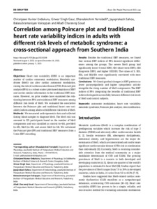 Correlation among Poincare plot and traditional heart rate variability indices in adults with different risk levels of metabolic syndrome: a cross-sectional approach from Southern India.