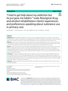 “I tried to get help about my addiction but he just gave me tablets:” male Aboriginal drug and alcohol rehabilitation clients’ experiences and preferences speaking about substance use in primary care.
