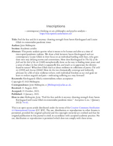 Holmqvist, Jytte (2023) Feel the fear and do it anyway: drawing strength from Søren Kierkegaard and Louise Glück in existentialist pandemic times. Inscriptions, 6 (1). pp. 74-83. ISSN 2535-5430