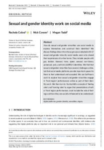 How do sexual and gender minorities use social media to express themselves and construct their identities? We discuss findings drawn from focus groups conducted with 17 sexual and gender minority social media users who shared their experiences of online harms. They include people with gay, lesbian, bisexual, trans, queer, asexual, non-binary, pansexual, poly, and kink (LGBTQ+) identities. We find that sexual and gender minorities face several challenges online, but that social media platforms provide important spaces for them to feel understood and accepted. We use Goffman's work to explore how sexual and gender minorities engage in ‘front region’ performances online as part of their identity work. We then turn to Hochschild's concepts of ‘feeling rules’ and ‘framing rules’ to argue that presentations of self, or front region performances, must include the role of feelings and how they are socially influenced to be understood.