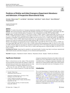 Mason-Jones, Amanda J., Beltrán, Luis, Keding, Ada, Berry, Vashti, Blower, Sarah L., Whittaker, Karen orcid iconORCID: 0000-0002-3493-9396 and Bywater, Tracey (2023) Predictors of Mother and Infant Emergency Department Attendance and Admission: A Prospective Observational Study. Maternal and Child Health Journal . ISSN 1092-7875
