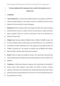 Decision‐making and future pregnancies after a positive fetal anomaly screen: A scoping review.