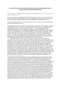 Karen McCarthy Woolf describes her book Seasonal Disturbances as focusing on the ‘holistic ecology of water’. Seasonal Disturbances explores how climate change is affecting London, exposing the different levels of risk facing humans and nonhumans, from aquatic creatures and trees to women and refugees. This discussion deploys recent theories on climate change, the Anthropocene, cosmopolitanism, and posthumanism to analyse McCarthy Woolf's intricate depiction of shared risks and responsibilities — human and nonhuman. Global links are enacted at formal and thematic levels in the poems, from the Afghan landay to the Japanese zuihitsu. The poems create intricate meshes of human and more-than-human agents — plutocrats and the poor, the River Thames, unseasonable weather, global patterns of trade and migration. As such, McCarthy responds to the knotty and intractable environmental issues that have prompted geologists to propose that we are living through an epoch shaped by human actions.