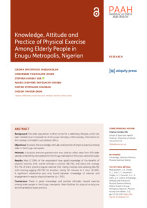 Conclusions: There is good knowledge and positive attitudes toward exercise among older people in the Enugu metropolis. More facilities for physical activity are recommended to boast practice.