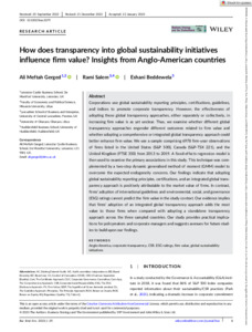 How does transparency into global sustainability initiatives influence firm value? Insights from Anglo‐American countries.