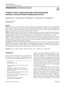 Parallels in Practice: Applying Principles of Research Integrity and Ethics in Domestic Violence Fatality Review (DVFR).
