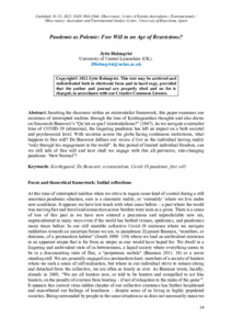 Holmqvist, Jytte (2022) Pandemic as Polemic: Free Will in an Age of Restrictions? Coolabah, 33 . pp. 14-24.