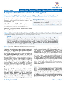 Al Abadie, Mohammed, Oumeish, Faris, Al-Rubaye, Mohammed, Al Abadie, Miriam and Shawara, Zinah (2023) Management of Adult Chronic Urticaria: Practical Approach. International Journal of Clinical & Experimental Dermatology, 8 (1). ISSN 2476-2415