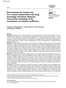 Determining the Sample Size for a Cluster-Randomised Trial Using Knowledge Elicitation: Bayesian Hierarchical Modelling of the Intracluster Correlation Coefficient.