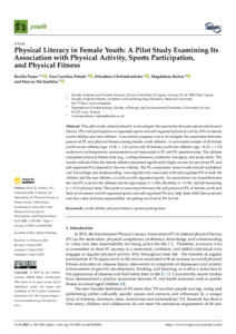 This pilot study aimed primarily to investigate the association between perceived physical literacy (PL) and participation in organised sports and self-organised physical activity (PA) in female youth athletes and non-athletes. A secondary purpose was to investigate the association between perceived PL and physical fitness among female youth athletes. A convenient sample of 18 female youth soccer athletes (age: 14.56 ± 1.42 years) and 18 female youth non-athletes (age: 14.22 ± 1.22) underwent anthropometric measurements and responded to PL and PA questionnaires. The athletes completed physical fitness tests (e.g., cardiopulmonary, isokinetic, handgrip, and jump tests). The results indicated that the female athletes presented significantly higher scores for perceived PL and self-organised PA compared to the non-athletes. The PL components ‘sense of self and self-confidence’ and ‘knowledge and understanding’ were significantly associated with self-organised PA in both the athletes and the non-athletes, as well as with organised sports. An association was found between the total PL score for the athletes and the squat jump (r = 0.50), flexibility (r = 0.59), and left hamstring (r = 0.51) physical tests. The positive association between the self-perceived PL of female youth and their involvement in both organised sports and self-organised PA may help them fulfil their potential and also value and take responsibility for getting involved in PA for life.