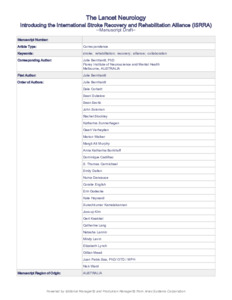 Bernhardt, Julie, Corbett, Dale, Dukelow, Sean, Savitz, Sean, Solomon, John M, Stockley, Rachel ORCID: 0000-0003-4441-6860, Sunnerhagen, Katharina S, Verheyden, Geert, Walker, Marion et al