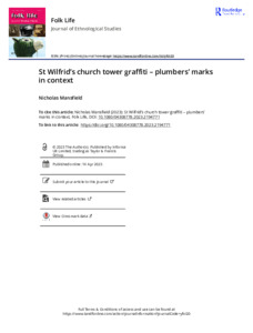 Mansfield, Nicholas orcid iconORCID: 0000-0002-5498-9710 (2023) St Wilfrid’s church tower graffiti - plumbers’ marks in context. Folk Life . ISSN 0430-8778
