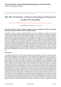 The War in Ukraine: A Process Sociological Perspective on How We Got Here.