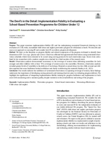 Kurdi, Zain, Millar, Annemarie, Barter, Christine Anne orcid iconORCID: 0000-0001-5682-5333 and Stanley, Nicky orcid iconORCID: 0000-0002-7644-1625 (2023) The Devil’s in the Detail: Implementation Fidelity in Evaluating a School-Based Prevention Programme for Children Under 12. Journal of Family Violence . ISSN 0885-7482