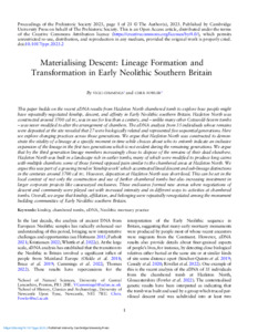 Cummings, Vicki orcid iconORCID: 0000-0001-9460-1517 and Fowler, Chris (2023) Materialising descent: lineage formation and transformation in Early Neolithic southern Britain. Proceedings of the Prehistoric Society . ISSN 0079-497X