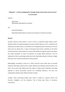 Haase, Ruby and Worthington, Rachel Elizabeth (2023) “Influencers” – a study investigating the messages people receive about coercive control on social media. The Journal of Forensic Practice . ISSN 2050-8794