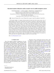 Skyrmion dynamics induced by surface acoustic waves in antiferromagnetic systems.