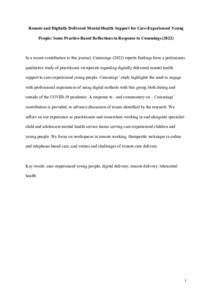 Remote and Digitally Delivered Mental Health Support for Care-Experienced Young People: Some Practice-Based Reflections in Response to Cummings (2022).