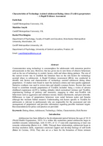 Dale, Faith, Smyth, Madeline and Worthington, Rachel Elizabeth (2023) Characteristics of Technology Assisted Adolescent Dating Abuse (TAADA) perpetrators: A Rapid Evidence Assessment. Abuse: An International Impact Journal, 4 (1). pp. 104-123. ISSN 2633-8742