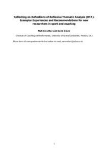 Reflecting on reflections of Reflexive Thematic Analysis (RTA): exemplar experiences and recommendations for new researchers in sport and coaching.