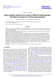 Solar energetic particle event onsets at different heliolongitudes: The effect of turbulence in Parker spiral geometry.