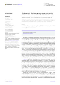 Dhooria, Sahajal, Chopra, Amit and Munavvar, Mohammed (2023) Editorial: Pulmonary sarcoidosis. Frontiers Media.
