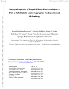 Strength Properties of Recycled Waste Plastic and Quarry Dust as Substitute to Coarse Aggregates: an Experimental Methodology.