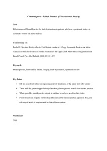 limb weakness following stroke. One intervention for the treatment of upper limb impairment post-stroke is mental practice. This article critically appraises a systematic review which assesses the effectiveness of mental practice for limb dysfunction in patients who have experienced stroke.