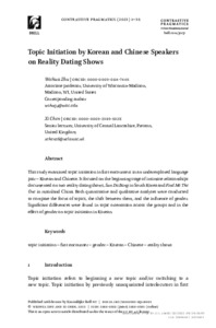 Topic Initiation by Korean and Chinese Speakers on Reality Dating Shows.