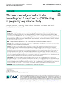 Women’s knowledge of and attitudes towards group B streptococcus (GBS) testing in pregnancy: a qualitative study.