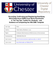 Recording, Confirming and Registering Qualifying Work Experience (QWE) from Work Placements: A ‘Ten Top Tips’ Toolkit For Students - and Guidance on Completing the SRA QWE Template.