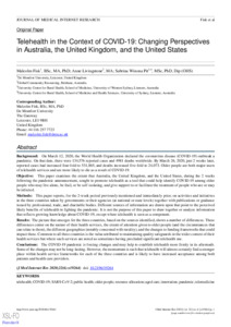 Telehealth in the Context of COVID-19: Changing Perspectives in Australia, the United Kingdom, and the United States.