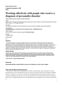 Personality disorder is a contentious diagnostic label that is associated with high levels of stigma, leading many practitioners and people with lived experience to call for a change in its use. Mental health nurses frequently encounter people who have received a diagnosis of personality disorder in various settings. This article provides a critique of this diagnosis and discusses the issues that are associated with this label. It explores alternative conceptualisations of personality disorder and emphasises the importance of formulation as a tool for making sense of service users’ past experiences. The article also details evidence-based interventions, trauma-informed care and interpersonal approaches that may be beneficial when working with this client group.