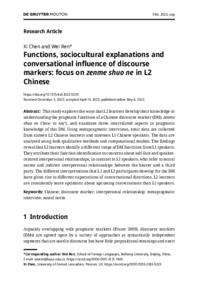 Chen, Xi orcid iconORCID: 0000-0003-2393-532X and Ren, Wei (2023) Functions, sociocultural explanations and conversational influence of discourse markers: focus on zenme shuo ne in L2 Chinese. International Review of Applied Linguistics in Language Teaching . ISSN 0019-042X