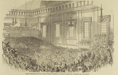 Band of Hope, . (1852) Band of Hope gathering in Exeter Hall, London. [Image]