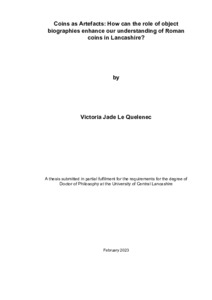 Le Quelenec, Victoria orcid iconORCID: 0000-0003-0778-6766 (2023) Coins as Artefacts: How can the role of object biographies enhance our understanding of Roman coins in Lancashire? Doctoral thesis, University of Central Lancashire.