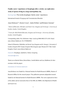 Family carers’ experiences of dysphagia after a stroke: An exploratory study of spouses living in a large metropolitan city.