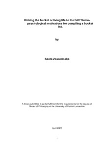 Zascerinska, Santa (2022) Kicking the bucket or living life to the full? Socio- psychological motivations for compiling a bucket list. Doctoral thesis, University of Central Lancashire.
