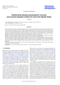 Relationship between photospheric currents and coronal magnetic helicity for force-free bipolar fields.
