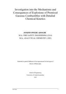 Adoghe, Joseph Owede (2023) Investigation into the Mechanisms and Consequences of Explosions of Premixed Gaseous Combustibles with Detailed Chemical Kinetics. Doctoral thesis, University of Central Lancashire.