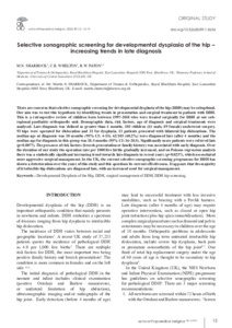 Sharrock, M. N., Whelton, C. R. and Paton, Robin William (2023) Selective sonographic screening for developmental dysplasia of the hip – increasing trends in late diagnosis. Acta Orthopaedica Belgica, 89 (1). pp. 15-19. ISSN 0001-6462