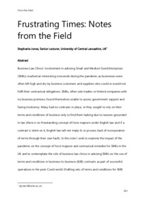 Jones, Stephanie Lynne (2023) Frustrating Times: Notes from the Field. International Journal of Clinical Legal Education . pp. 141-156. ISSN 1467-1069