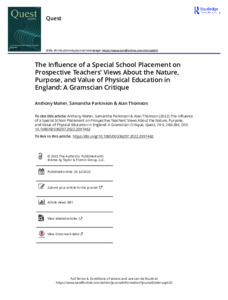 The Influence of a Special School Placement on Prospective Teachers’ Views About the Nature, Purpose, and Value of Physical Education in England: A Gramscian Critique.