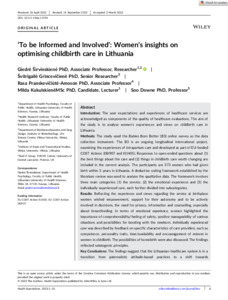 ‘To be Informed and Involved’: Women's insights on optimising childbirth care in Lithuania.