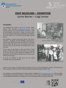 Lerose, Luigi orcid iconORCID: 0000-0003-3848-1893 and Barnes, Lynne orcid iconORCID: 0000-0003-4504-7139 (2023) DeafMuseums - Exhibition. Project Report. UNSPECIFIED, DeafMuseums Website.