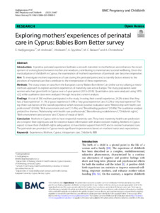 Exploring mothers’ experiences of perinatal care in Cyprus: Babies Born Better survey.