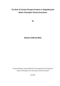 Gilbody, Stephen (2023) The Role of Certain Phospho-Proteins in Regulating the Mode of Synaptic Vesicle Exocytosis. Doctoral thesis, University of Central Lancashire.