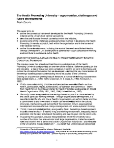 The Health Promoting University: opportunities, challenges and future developments.