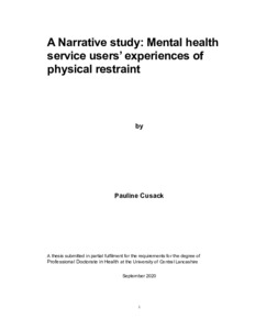 A Narrative study: Mental health service users’ experiences of physical restraint.